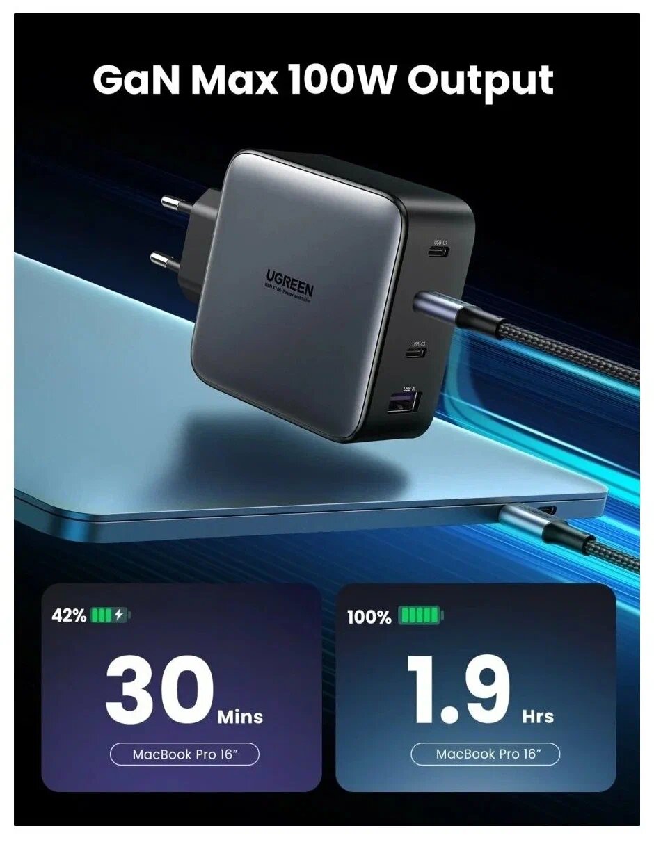 СохранитьСетевое зарядное устройство uGreen CD226 100W интересное:
