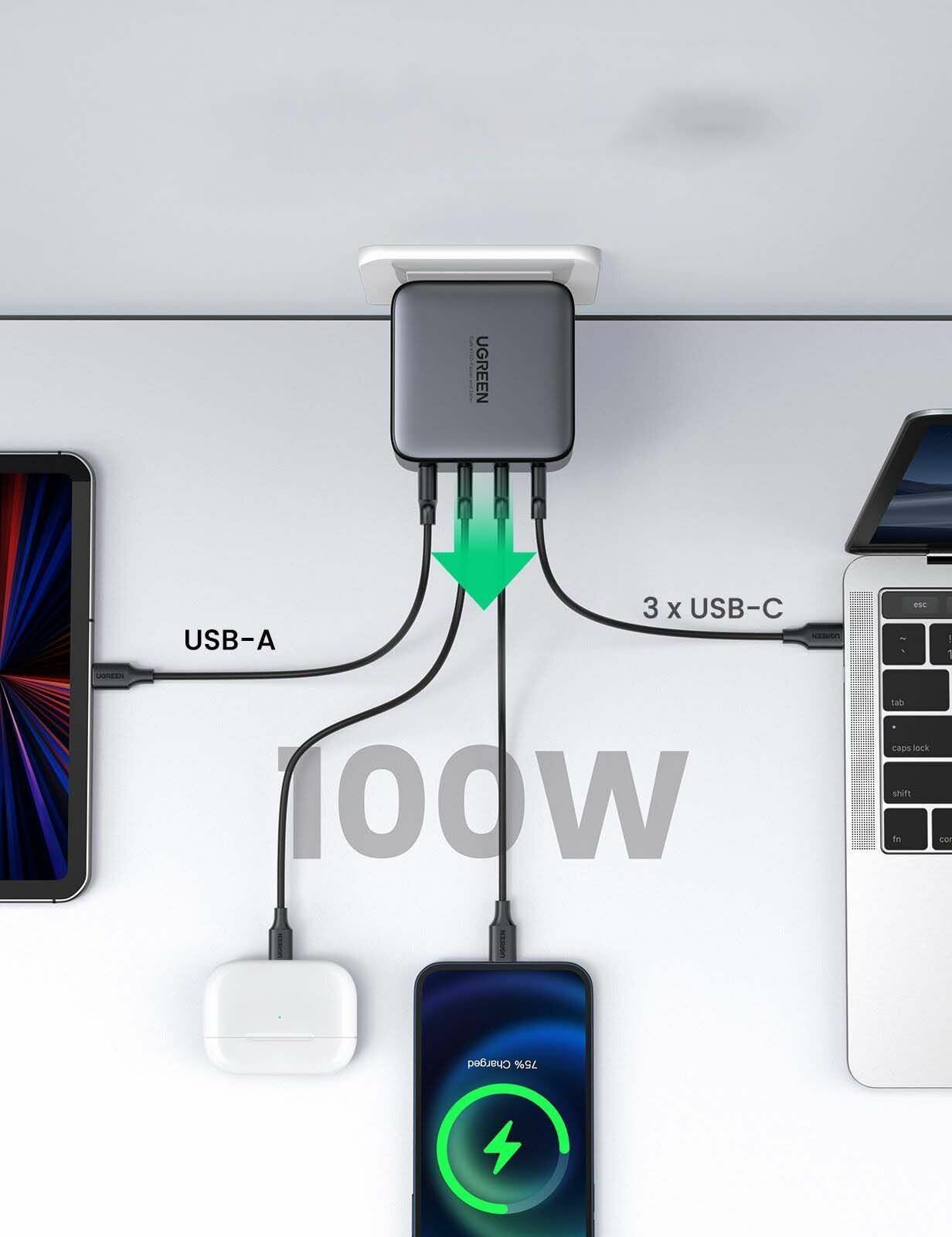 Сетевое зарядное устройство Ugreen USB A + 3 USB C 100W GaN (40747)