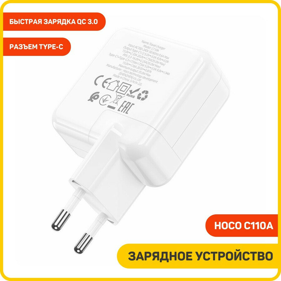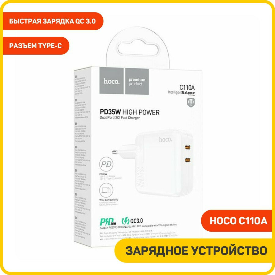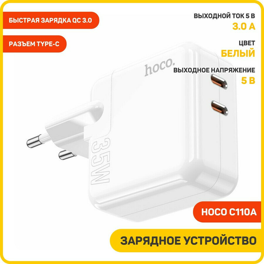 Сетевое зарядное устройство Hoco C110A 2*USB-C 35W (PD35W/QC3.0/AFC/FCP), Белый