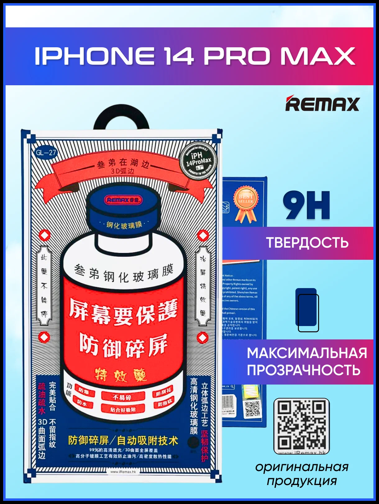 Защитное стекло на iPhone 14 Pro Max, REMAX, GL-27, черное
