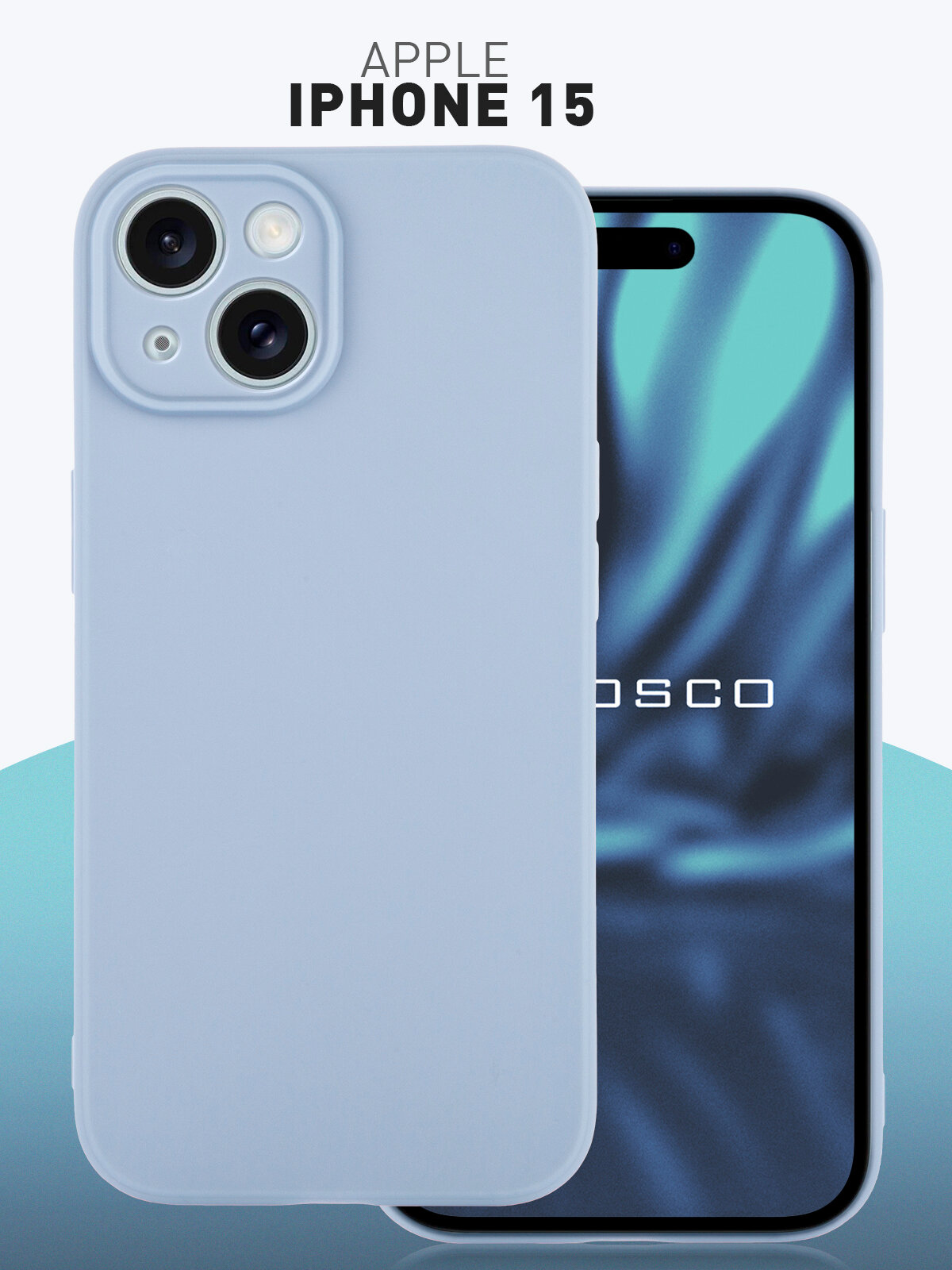 Матовый силиконовый чехол Rosco на Apple iPhone 15 (Айфон 15), тонкий, голубой под цвет телефона