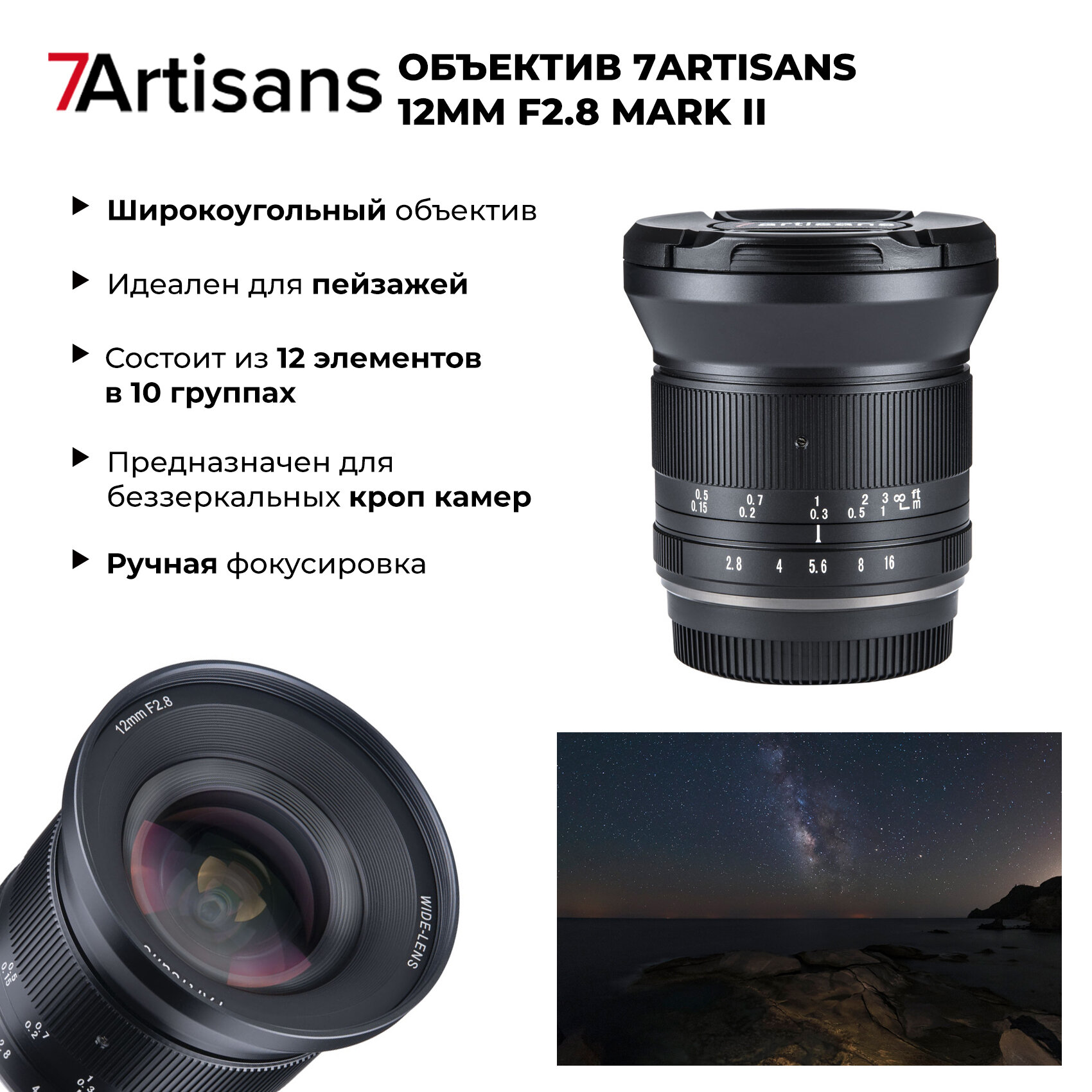 7Artisans 12mm f/2.8 Sony Nex (E-mount) mark II интересное: