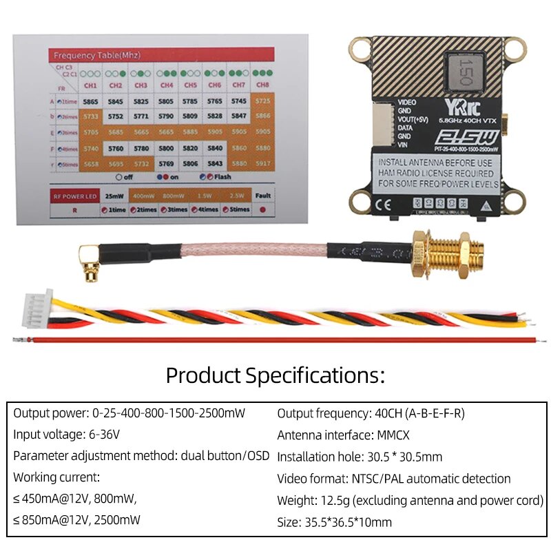 Квадрокоптер YRRC 5,8G 40CH 2,5 Вт 2500 мвт FPV VTX 0-2500 мвт, 1PCS интересное: