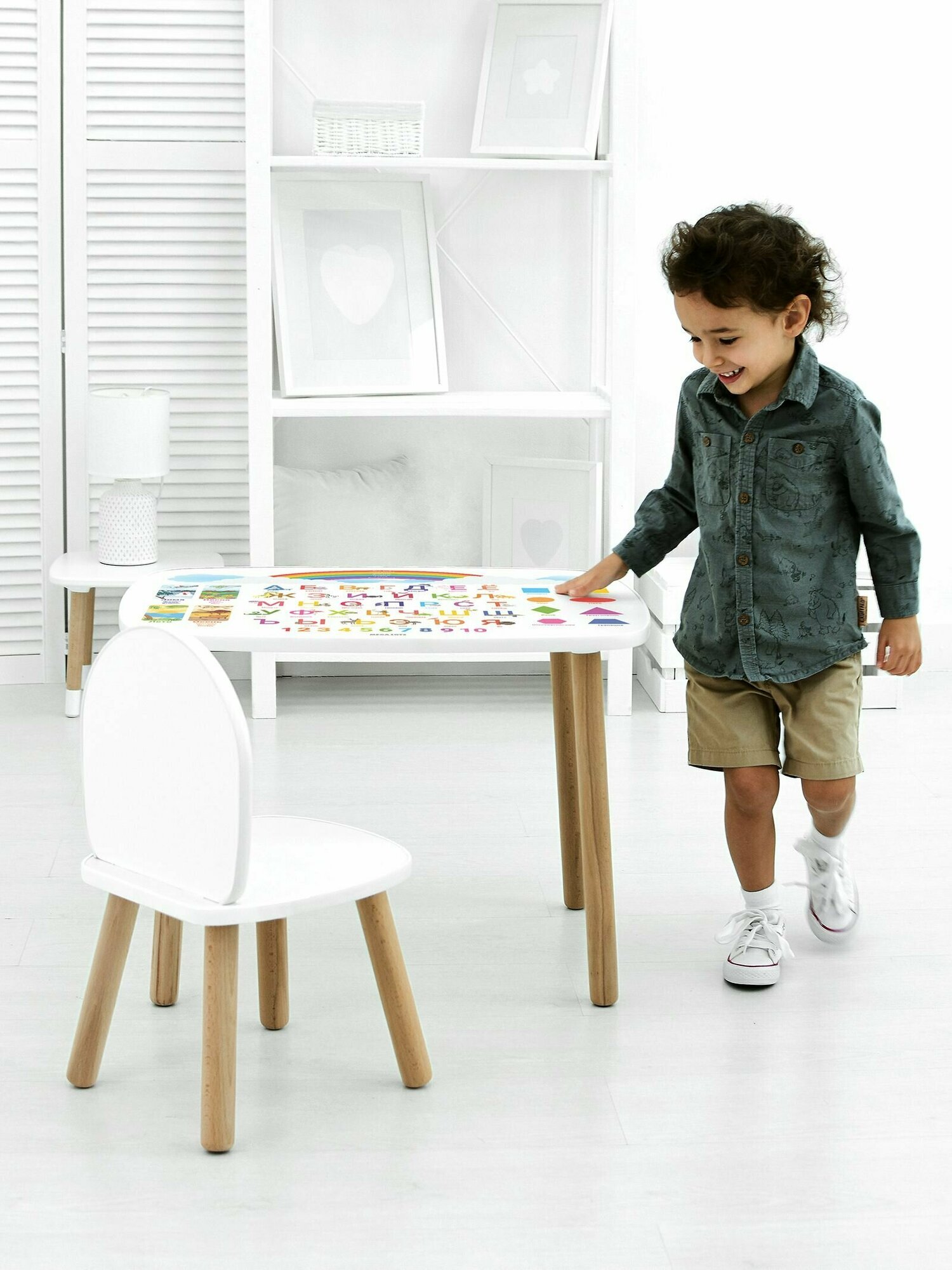 Стол детский деревянный Алфавит, Цифры, Буквы MEGA TOYS / столик для детей из дерева для сада, рисования, игровой комнаты