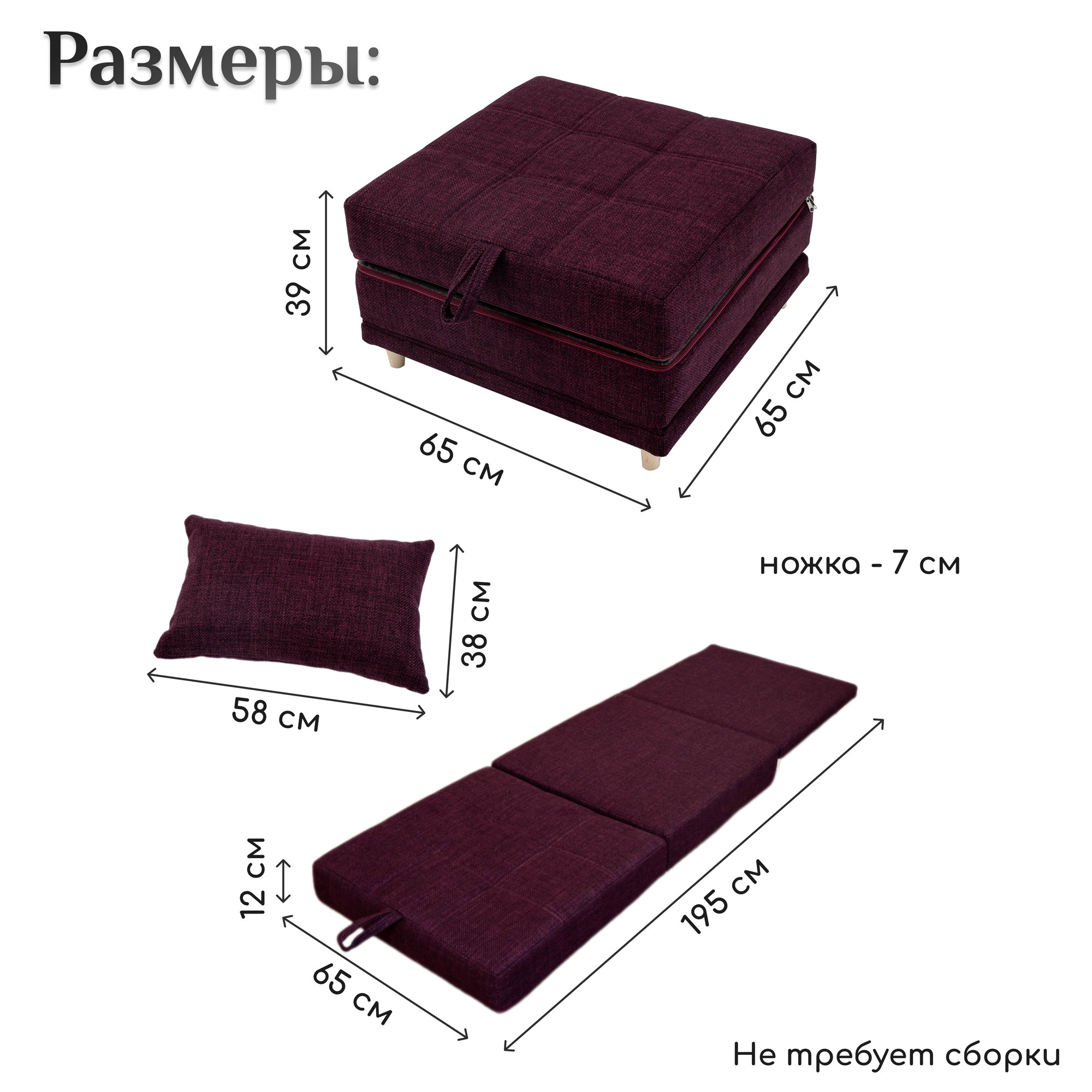 | Дополнительная информация | Комплектация: 1 пуф трансформер, 5 ножек из бука |