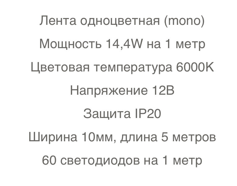| Количество светодиодов на метр | 60 шт. |