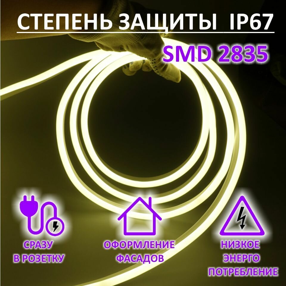 Гибкий неон 220в, LUX 8х16, 144 Led/m,11W/m, теплый белый, 10 метров