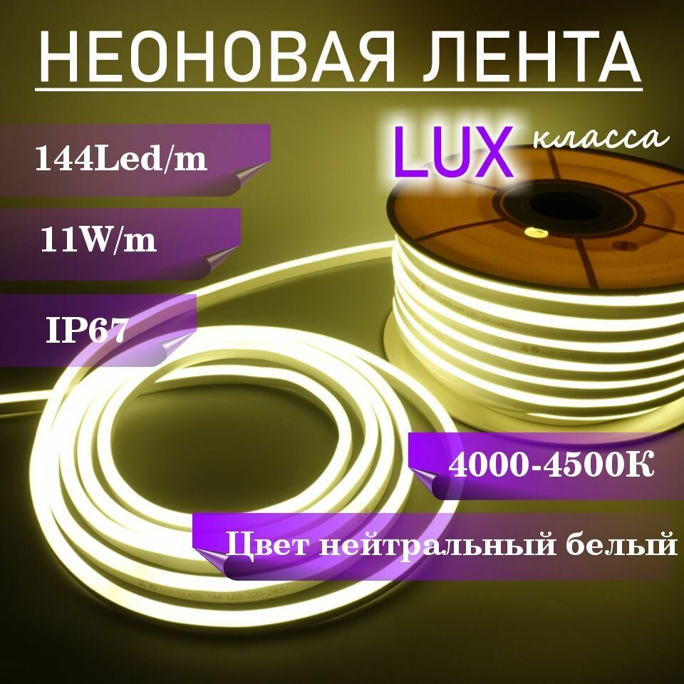 Купить Гибкий неон 220в, LUX 8х16, 144 Led/m,11W/m, нейтральный белый, 10 метров