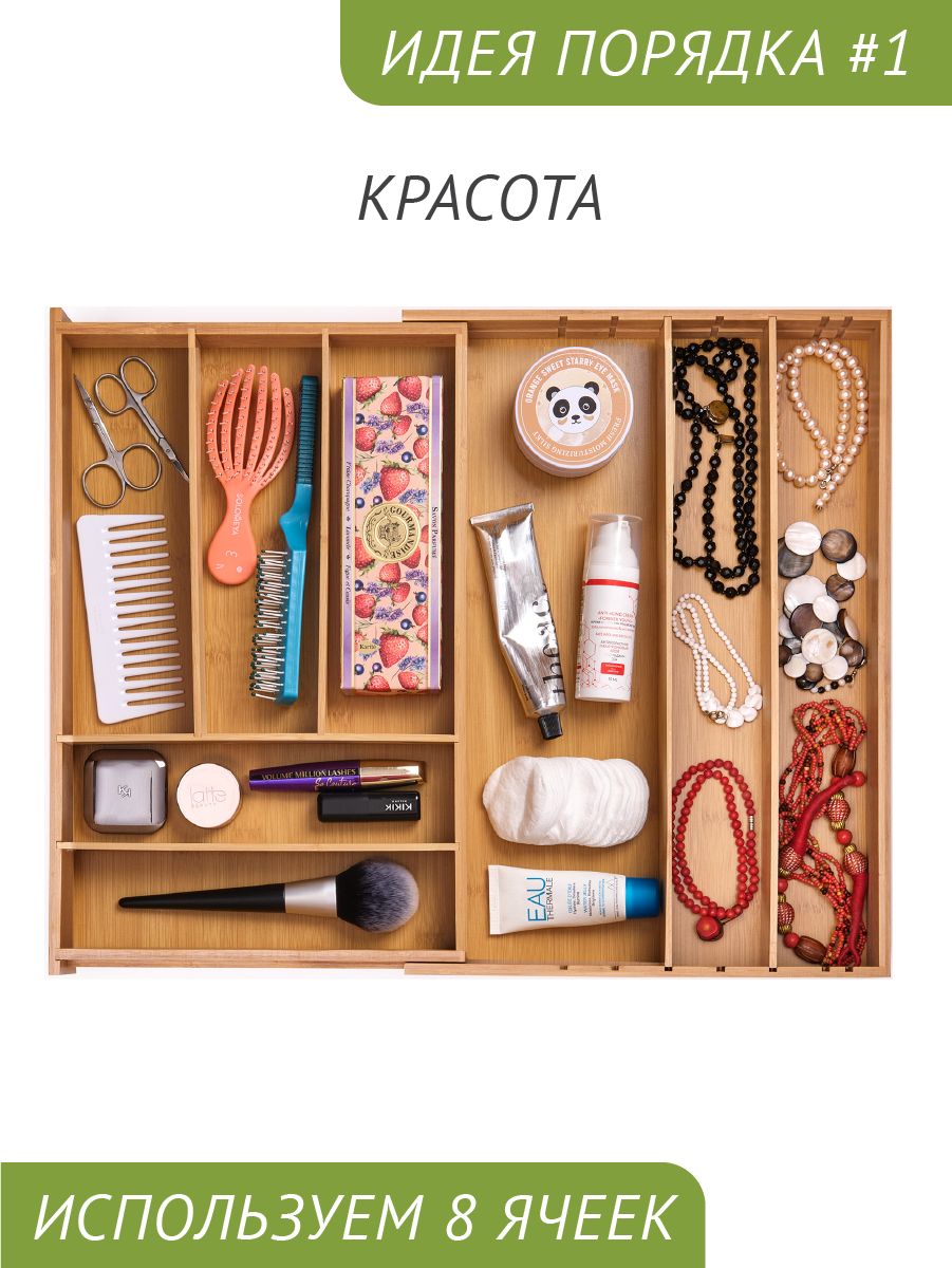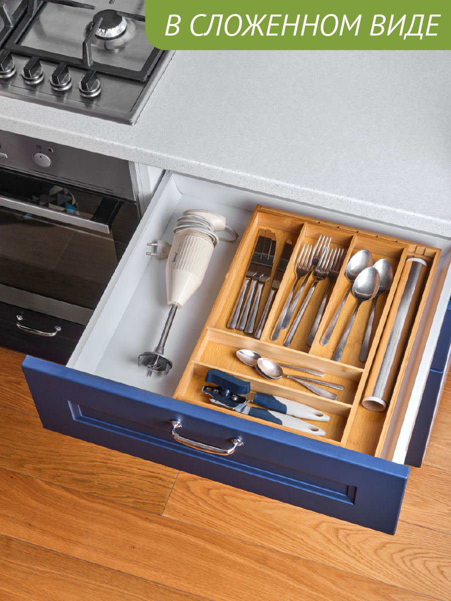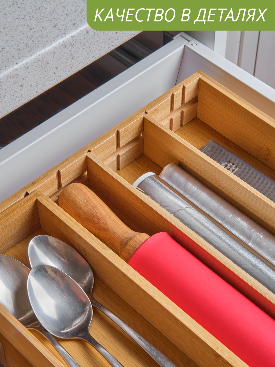 Раздвижной лоток для столовых приборов из бамбука 8 ячеек интересное: