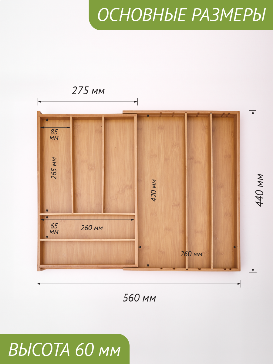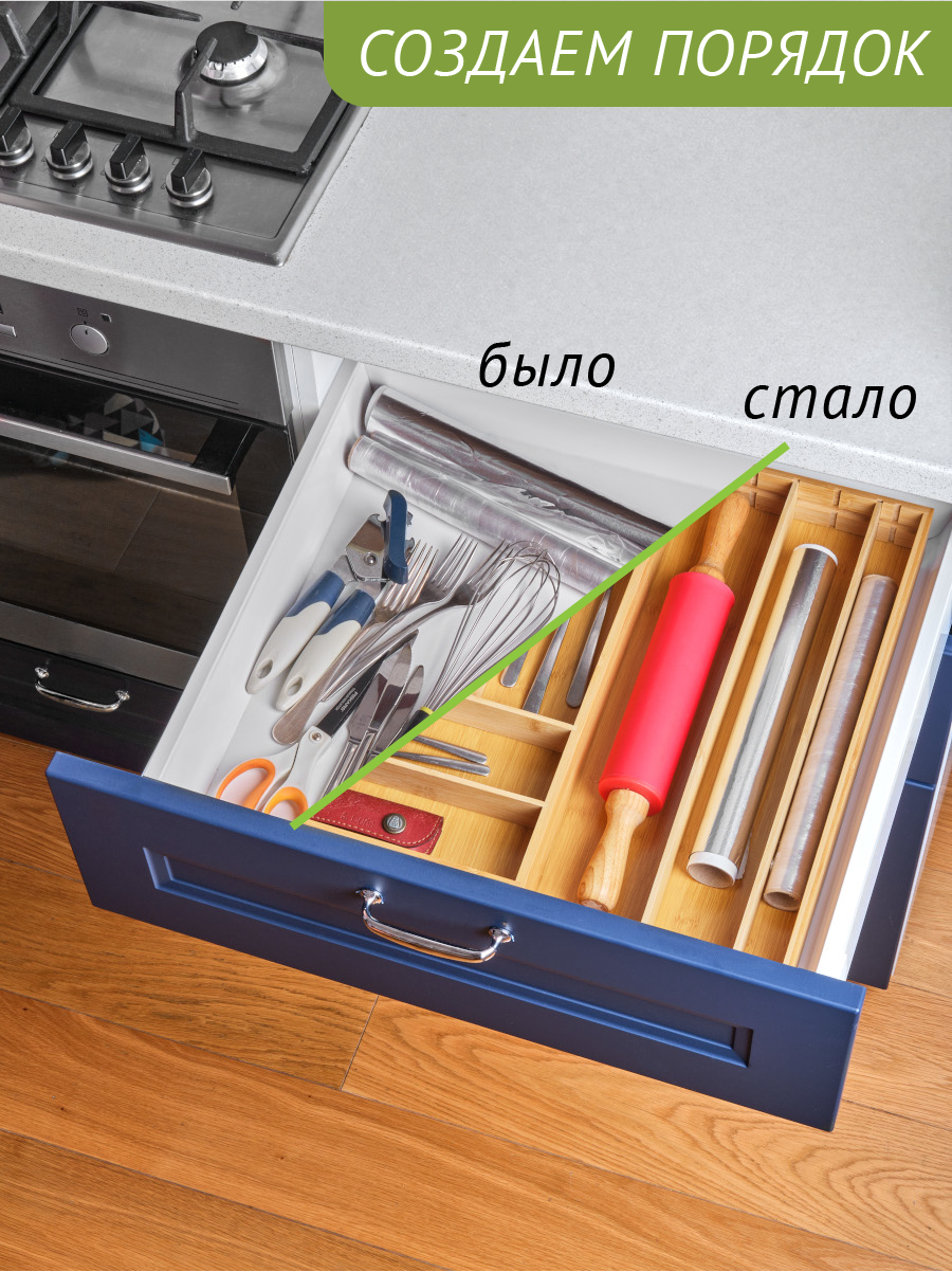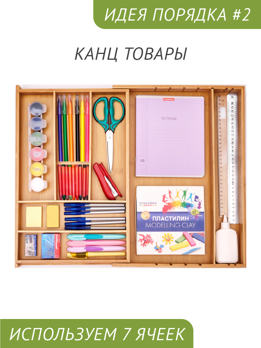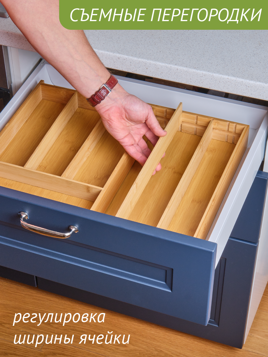 Раздвижной лоток для столовых приборов из бамбука 8 ячеек интересное: