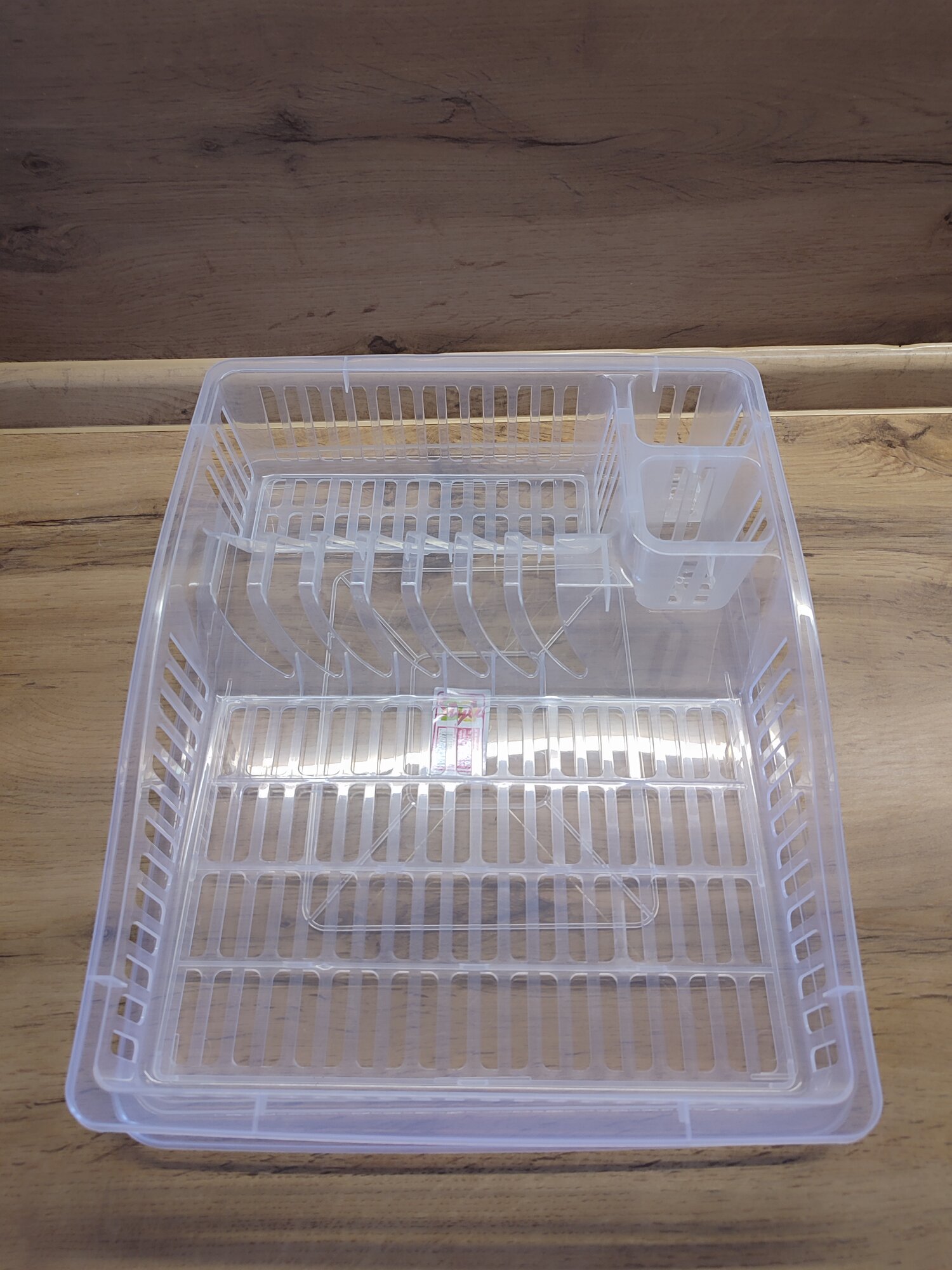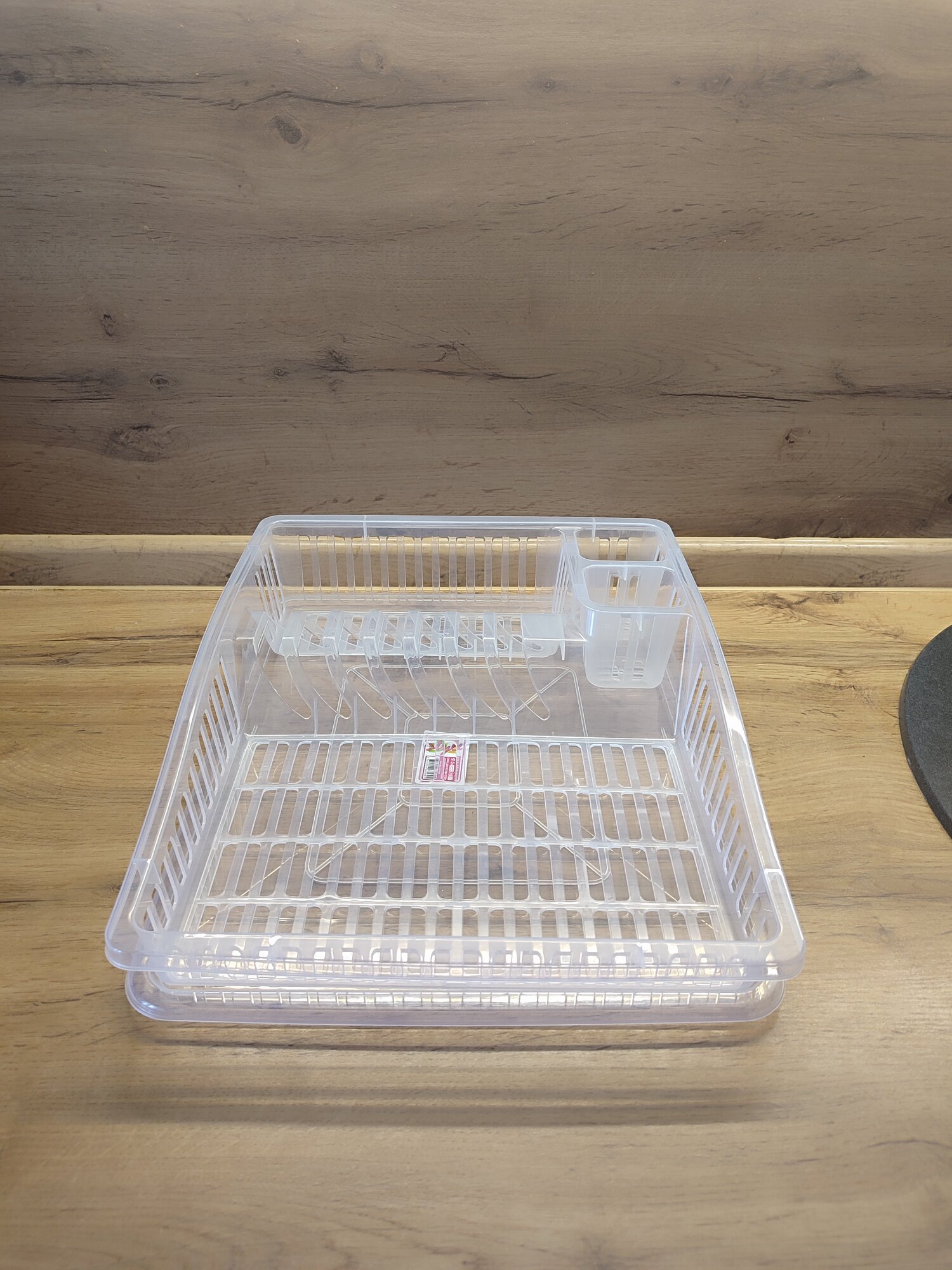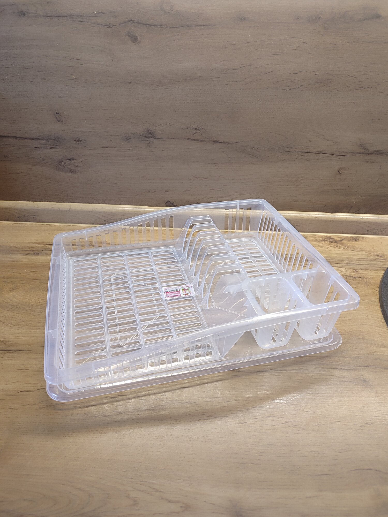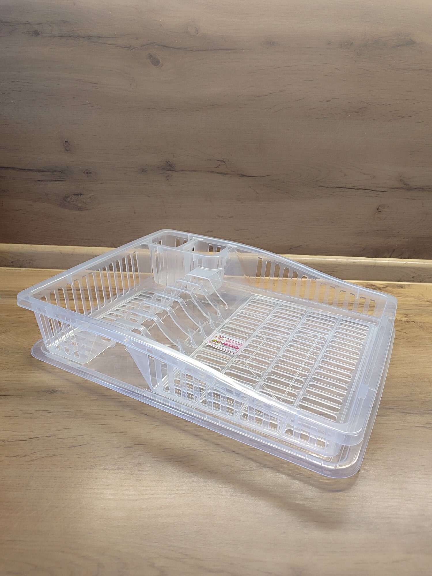 Купить Сушка для посуды пластиковая с поддоном, маленькая прозрачная DDStyle 38*30*8 см.