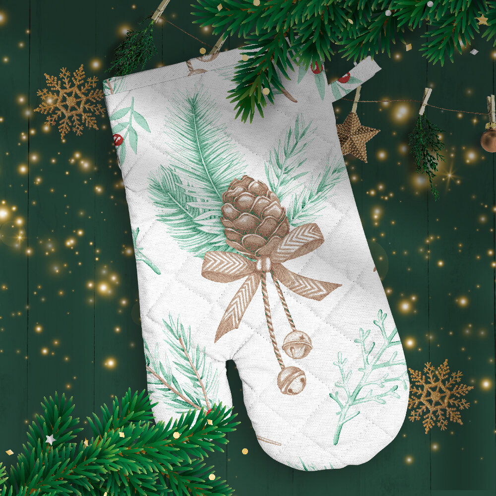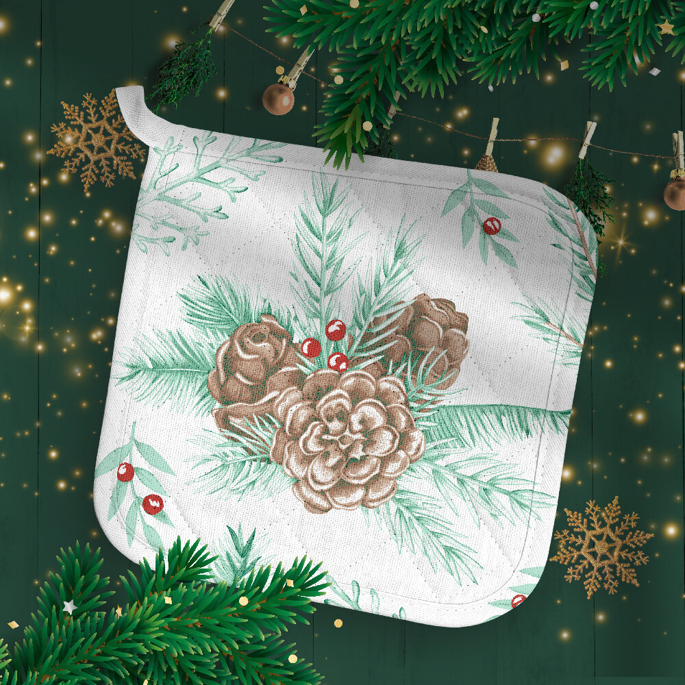 Купить Набор кухонный Василиса рукавица + прихватка, Рогожка, хлопок 100%, Новогодний лес