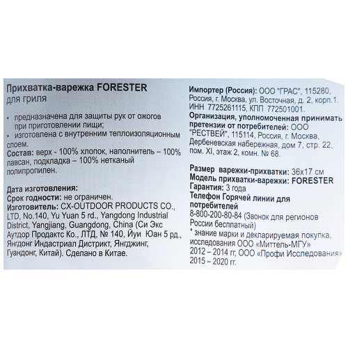 | Подробная комплектация | Варежка-прихватка для гриля FORESTER GRILL CHEF |