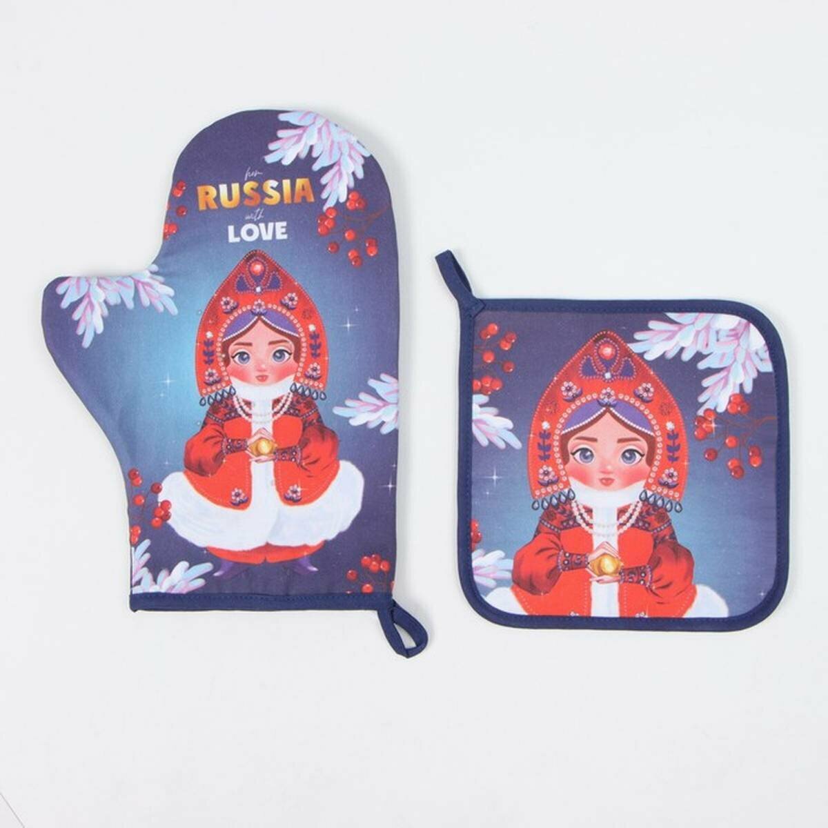 Купить Новый год. Набор кухонный Этель "Матрёшка": прихватка 19х19 см, варежка-прихватка 20х28 см, 100% хл
