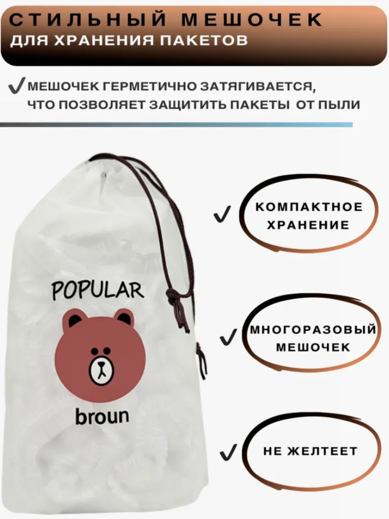 Пакеты шапочка POPULAR BROUN для хранения продуктов, 200 шт. диаметр до 24 см. интересное: