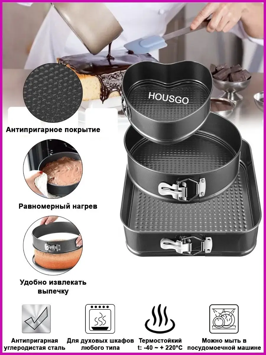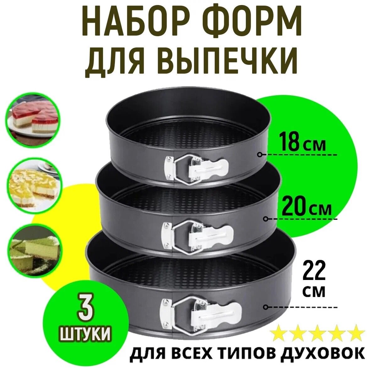 | Дополнительная информация | рифленое дно; в наборе формы трех размеров: 20, 22 и 24 см |