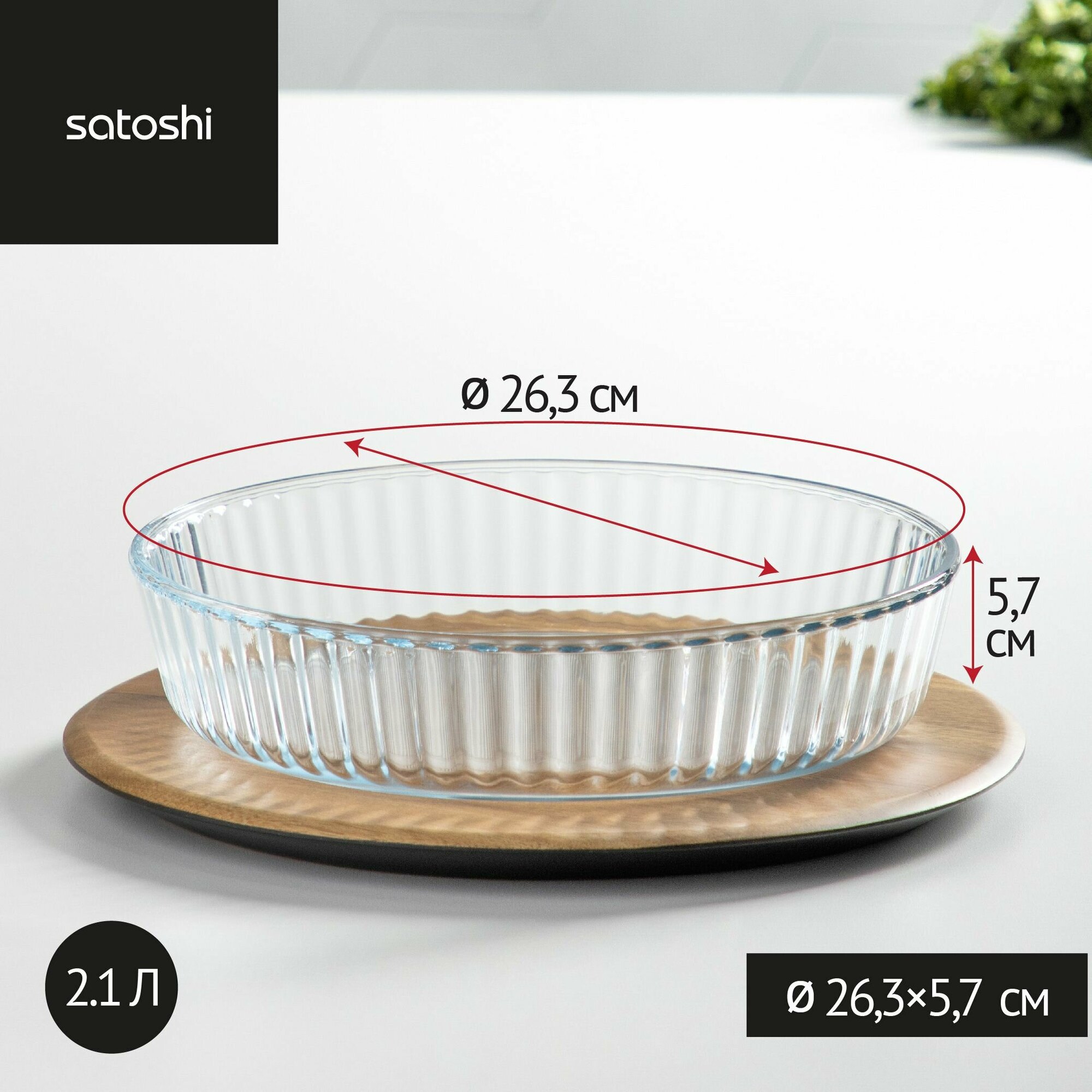 SATOSHI Форма для запекания жаропрочная круглая, стекло, 26,3х5,7см, рельефный бортик, 2,1л