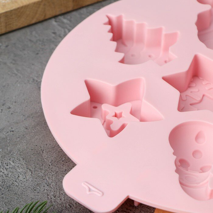 ! Форма силиконовая для выпечки «Новый год», 23×23×2,3 см, 7 ячеек, цвет розовый