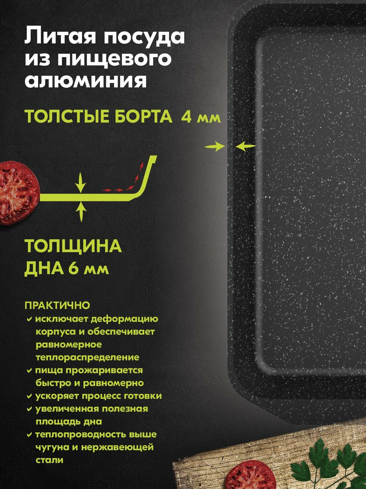 Противень "Мечта" 27*19 см Гранит с антипригарным покрытием BLACK, подходит для духовки и посудомоечной машины