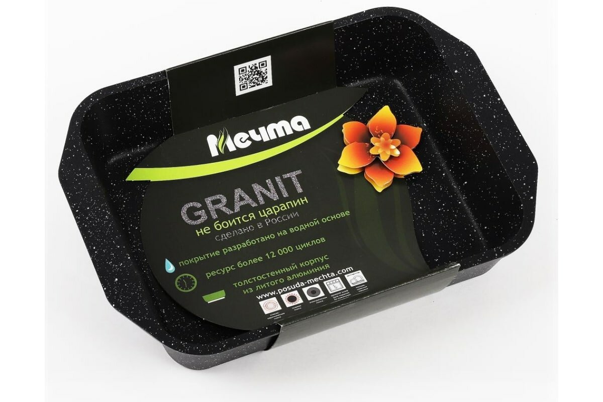 СохранитьПротивень "Мечта" 27*19 см Гранит с антипригарным покрытием BLACK, подходит для духовки и посудомоечной машины интересное: