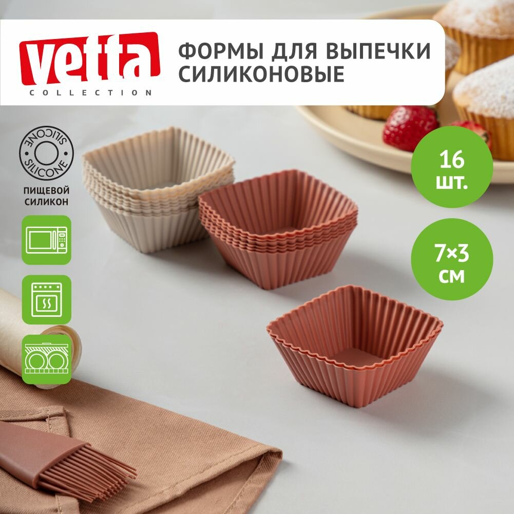 Купить Набор форм для выпечки кексов VETTA Кекс, 16 шт, 7х3 см, силиконовые, квадратные