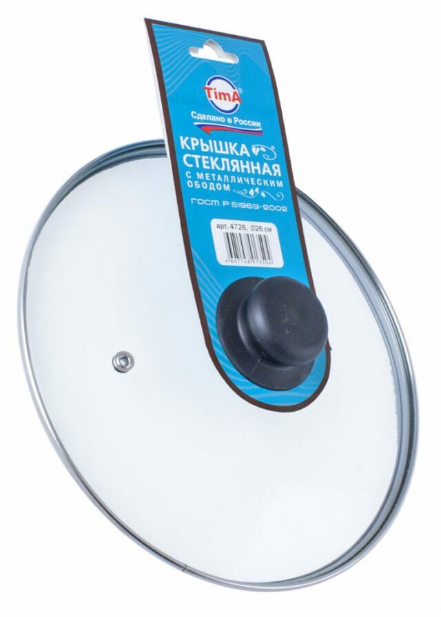 Крышка стеклянная TimA с ручкой (полипропилен) с металлическим ободком и пароотводом, д.20 см , производство России