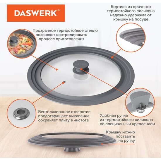 СохранитьКрышка Daswerk для любой сковороды и кастрюли универсальная 3 размера (24-26-28 см) серая, , 607591 интересное: