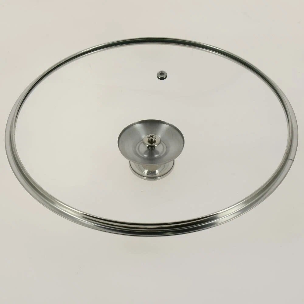 Крышка стеклянная TimA с металлическим ободком и овальной ручкой (нержавеющая сталь), пароотвод, диаметр 26 см интересное: