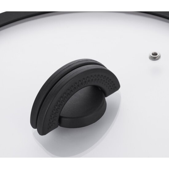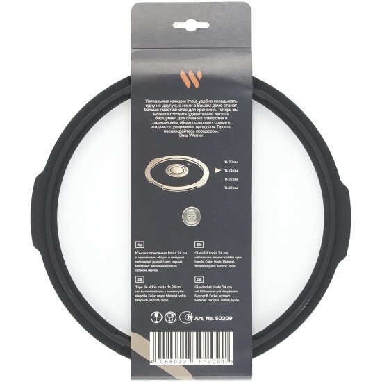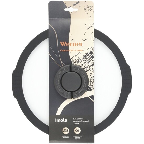 Купить WERNER Крышка стеклянная IMOLA 24см с силиконовым ободком и складной нейлоновой ручкой. Цвет: черный. Материал: закаленное стекло, силикон, нейлон. 50209
