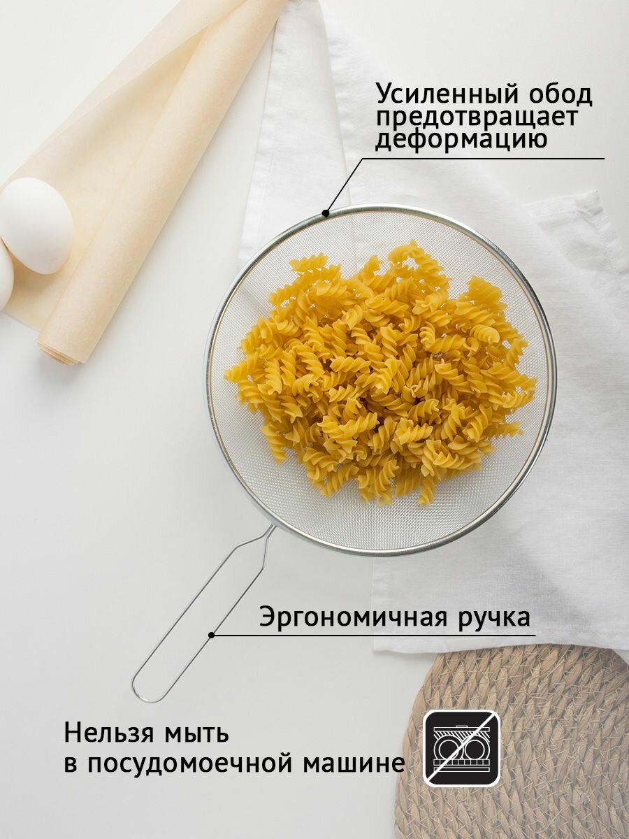 | Дополнительная информация | сито удобно держать в руке и просеивать продукты прямо в емкость |