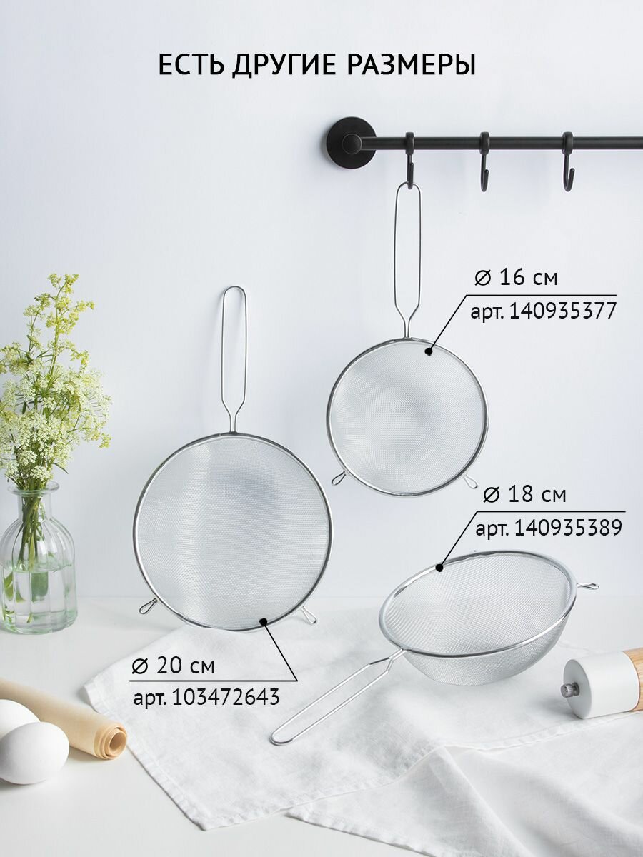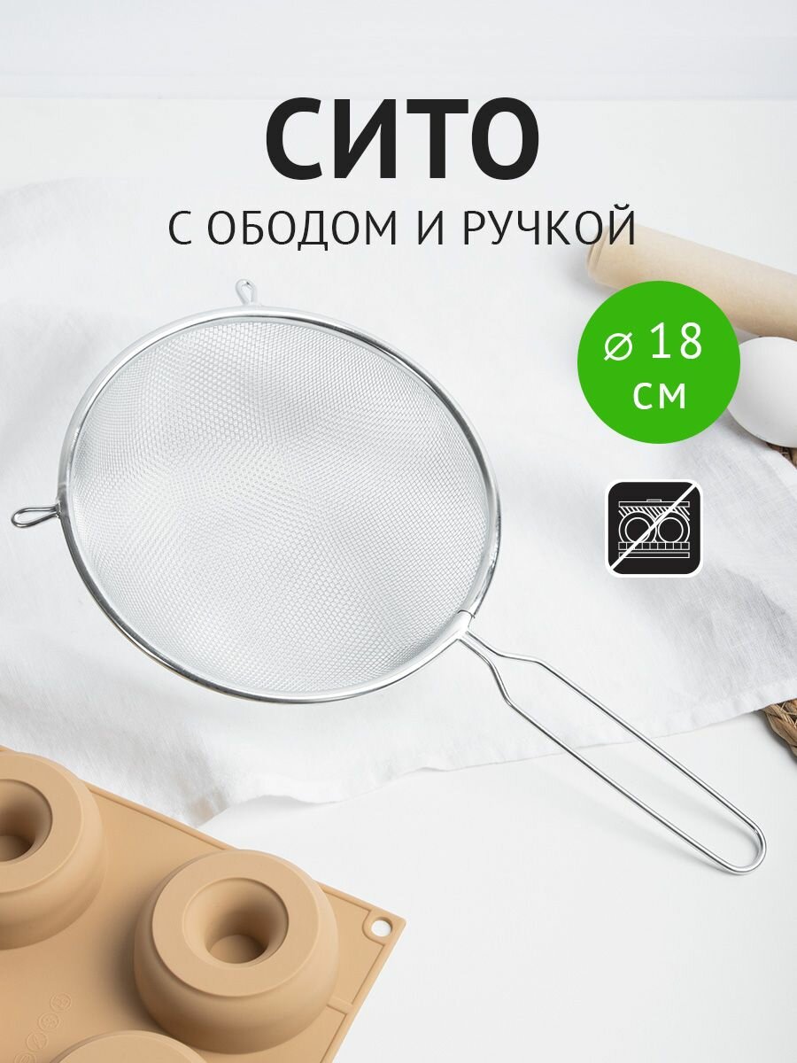Сито для муки с ободом и ручкой FY-018, 18 см, металл интересное: