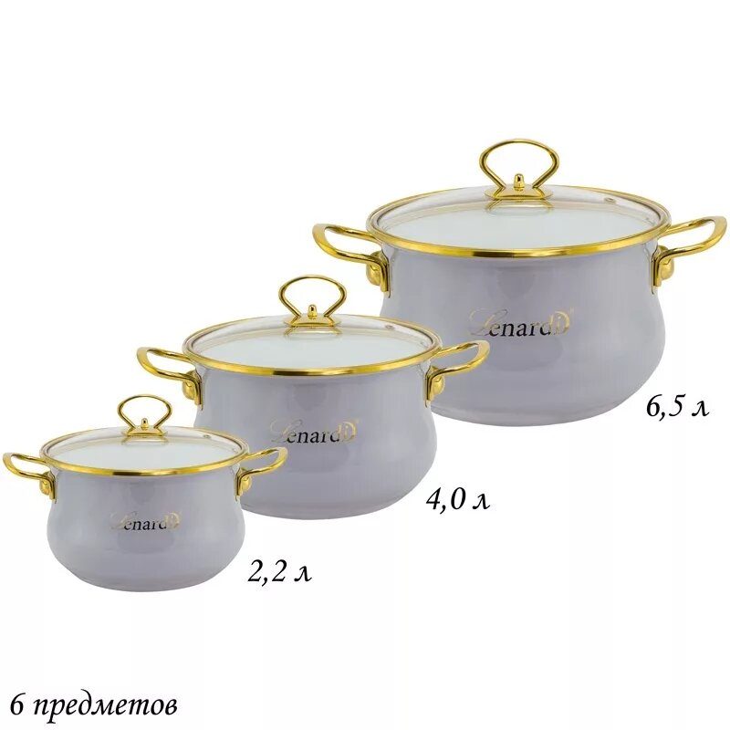 Набор кастрюль 3 шт Lenardi, эмалированные, 6 пр