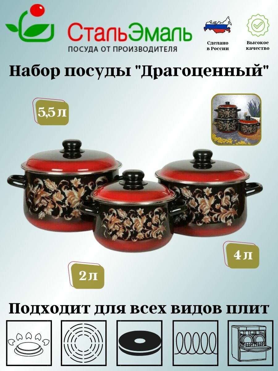 Набор кастрюль Жостово, кастрюли 2/4/5,5л, 1С408 черный