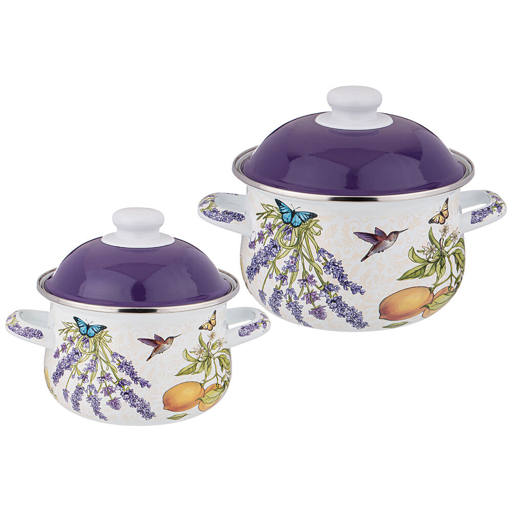 943-102 набор кастрюль эмалированный, серия "LAVANDER CATS" 4ПР. 2,0/2,8Л ДИА.18/20СМ