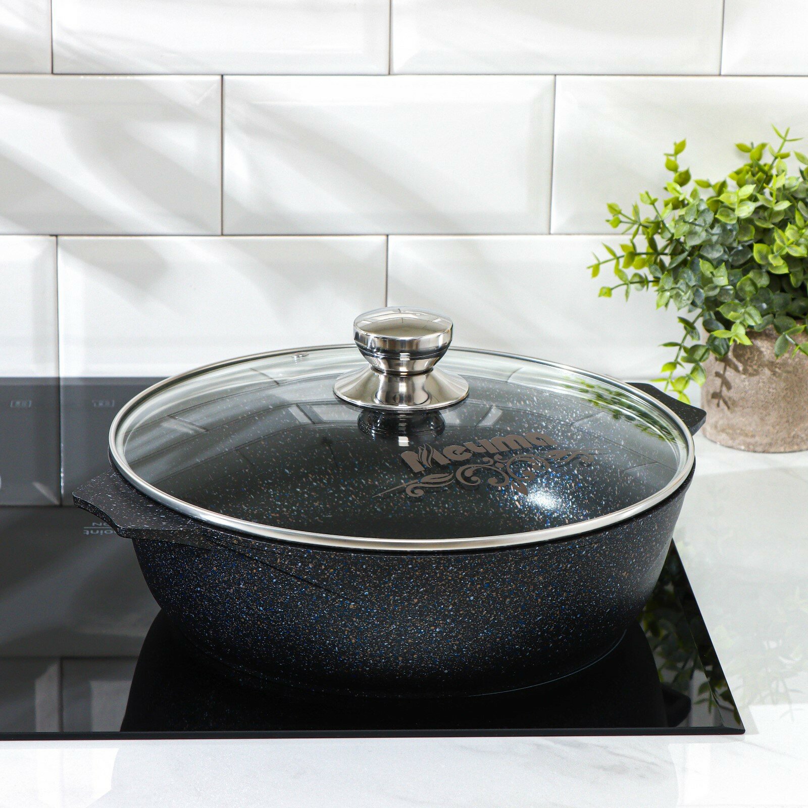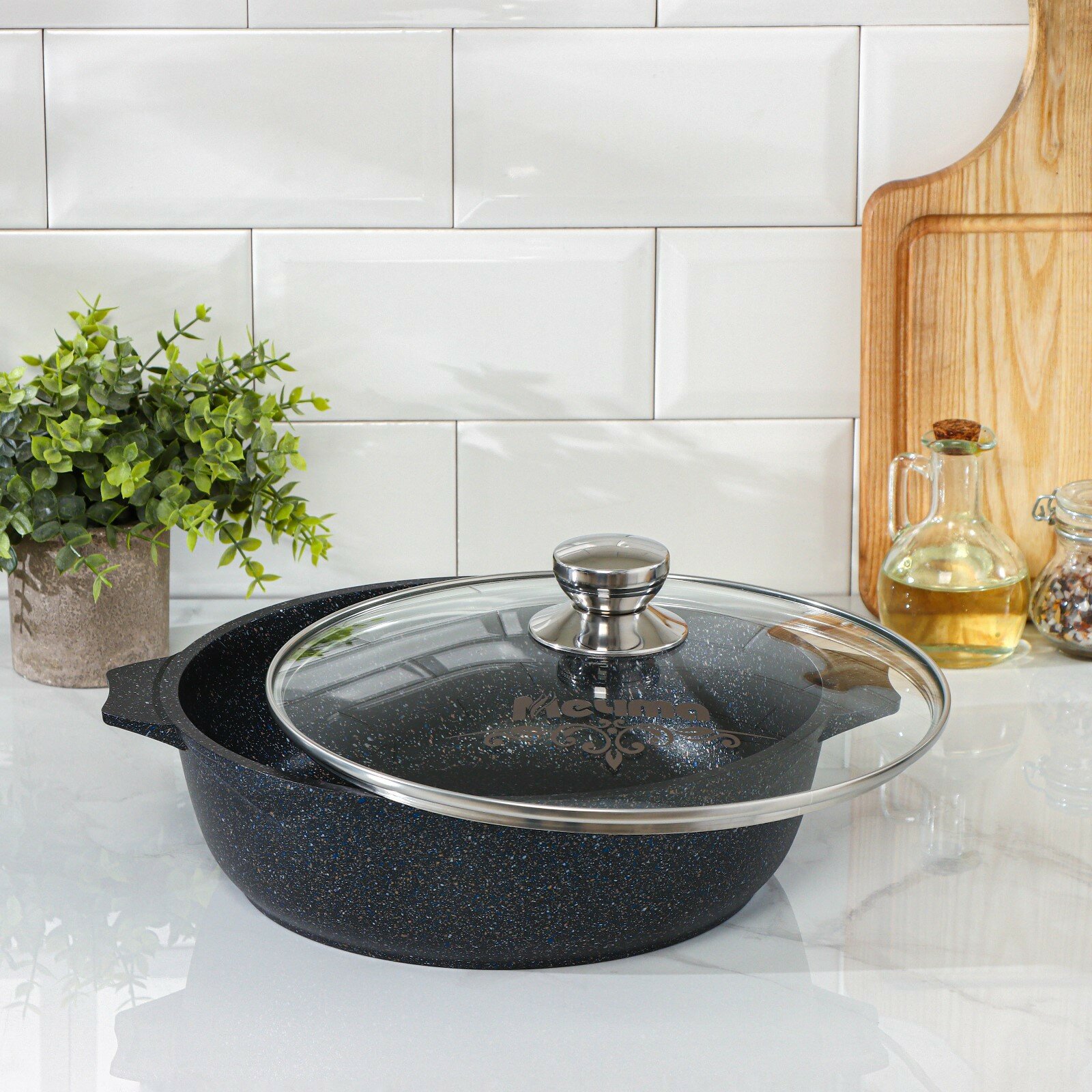 Жаровня 4 л Мечта Гранит 34802, черный гранит, крышка стекло