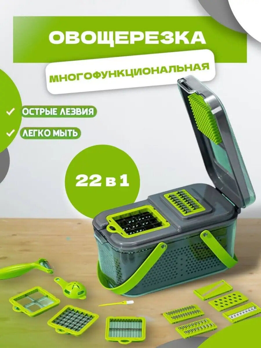 Овощерезка многофункциональная Ручная 22 в 1 / Мультитерка с контейнером / Качество ТОП