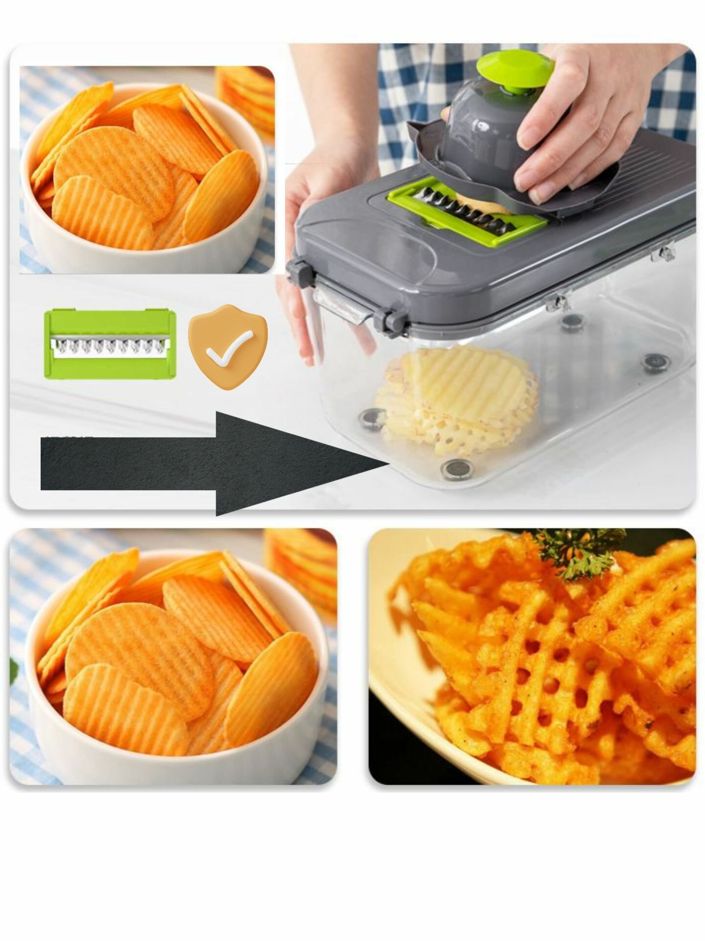 | Форма нарезки | брусочки / дольки / кубики / лапша / ломтики / соломка / спираль / стружка |