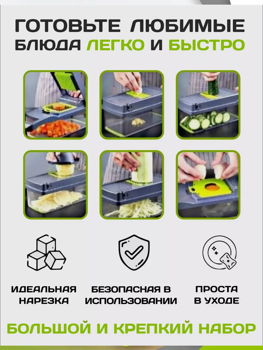 Овощерезка многофункциональная Ручная 22 в 1 / Мультитерка с контейнером интересное: