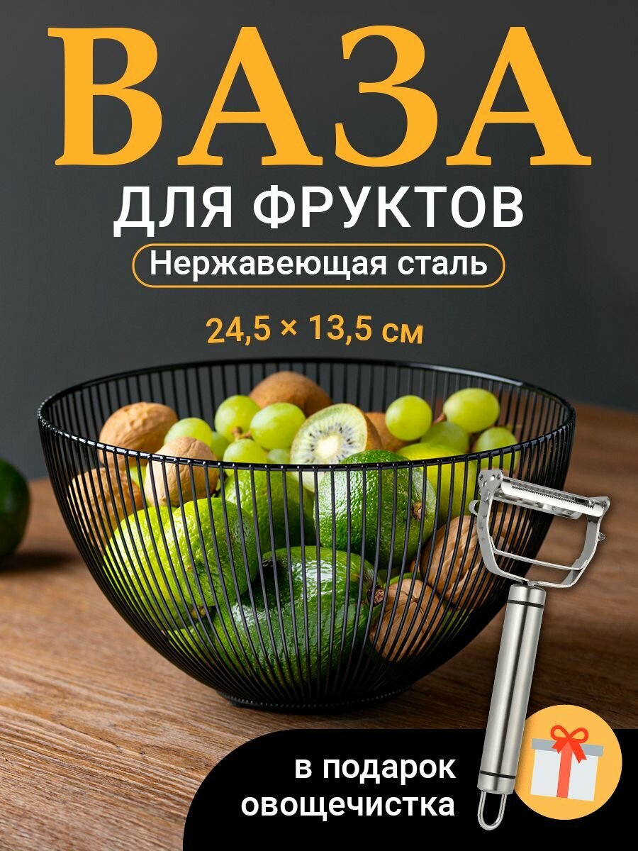 Фруктовница, Shiny Kitchen, Ваза для фруктов, Корзина металлическая, Тарелка для конфет и печенья, Блюдо для овощей, Черная