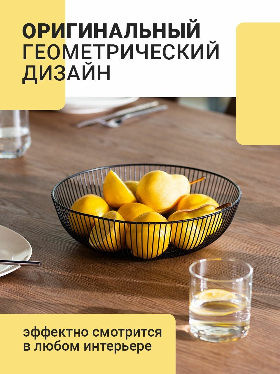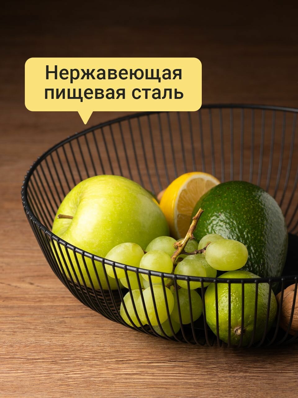 Фруктовница, Shiny Kitchen, Ваза для фруктов, Корзина металлическая, Тарелка для конфет и печенья, Блюдо для овощей, Черная