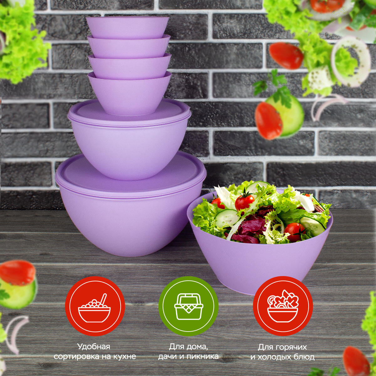Набор салатников и мисок с крышками
