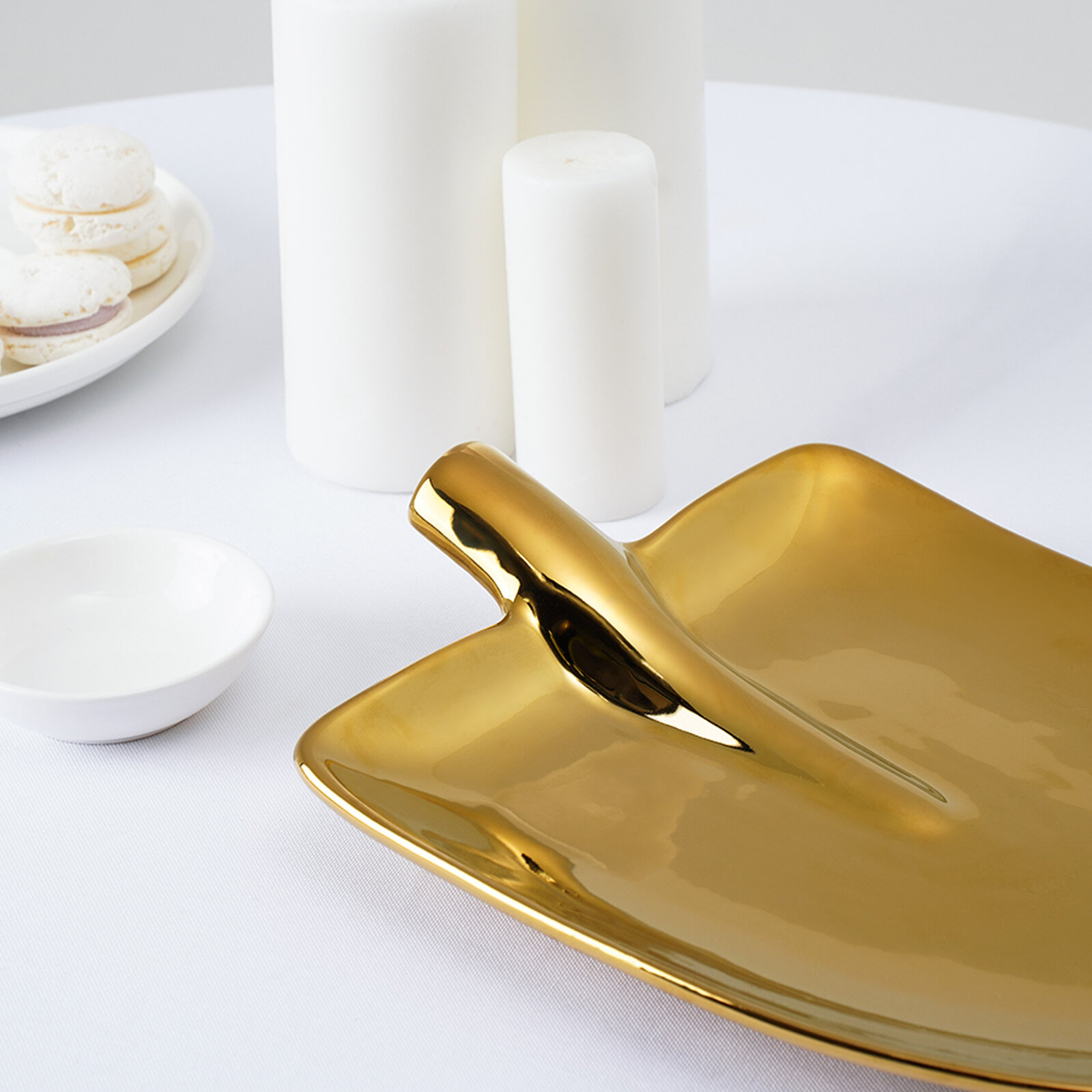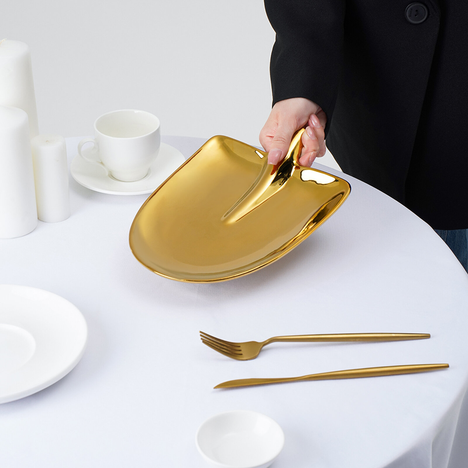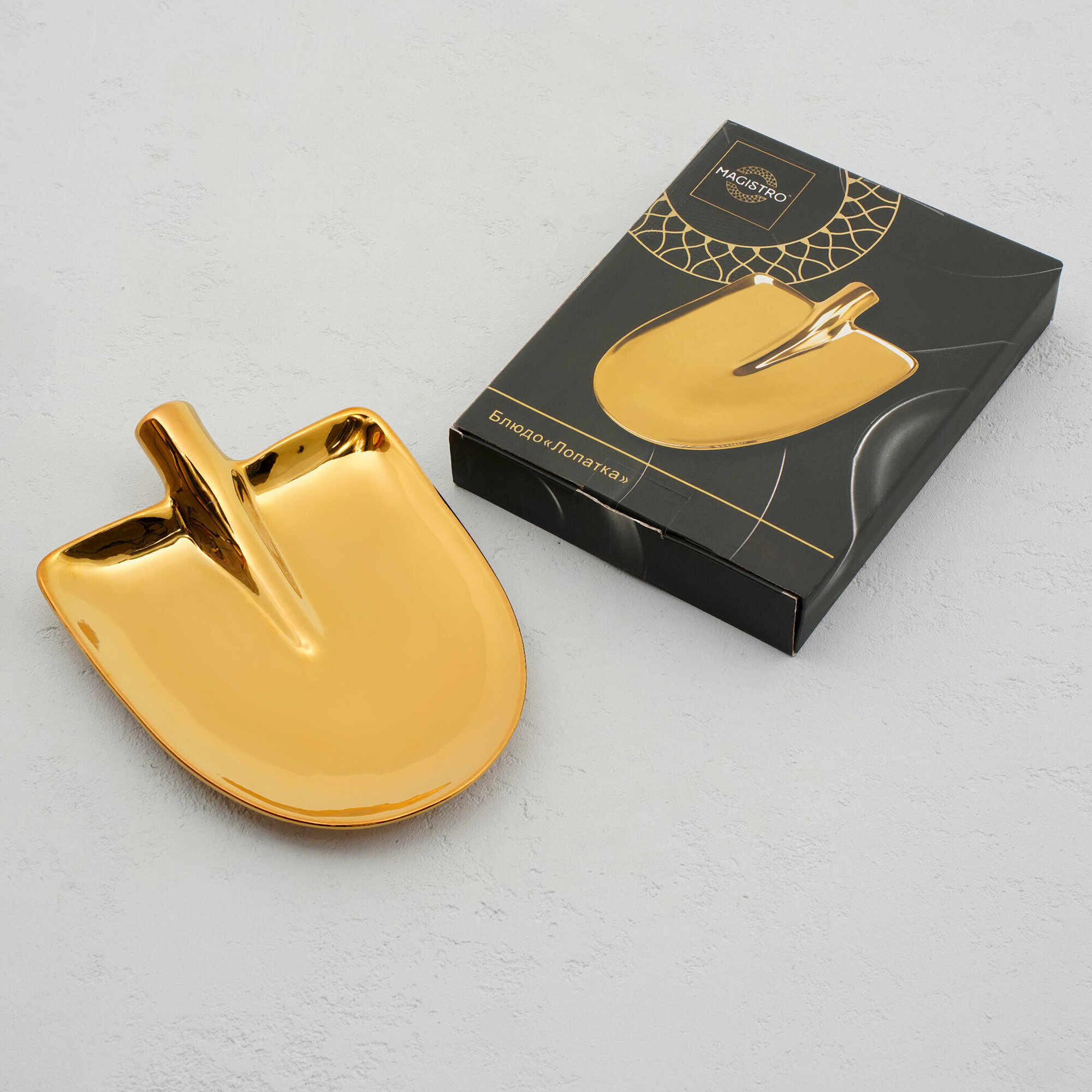 Блюдо фарфоровое для подачи и сервировки, глянцевое Magistro "Лопатка", 24х18х4.5 см, цвет золотой интересное: