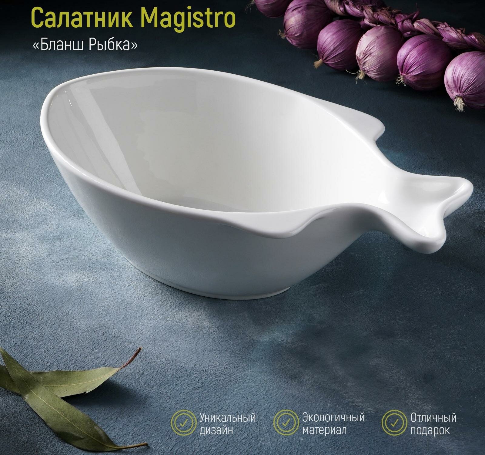Салатник фарфоровый Magistro «Рыбка», 1 л, 26,5×15×8,5 см, цвет белый
