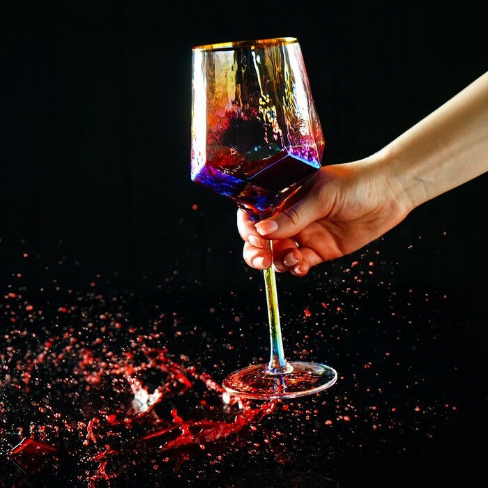 Бокал стеклянный для вина Magistro «Иллюзия», 540 мл, 10×24 см, цвет синий (арт. 9080460)