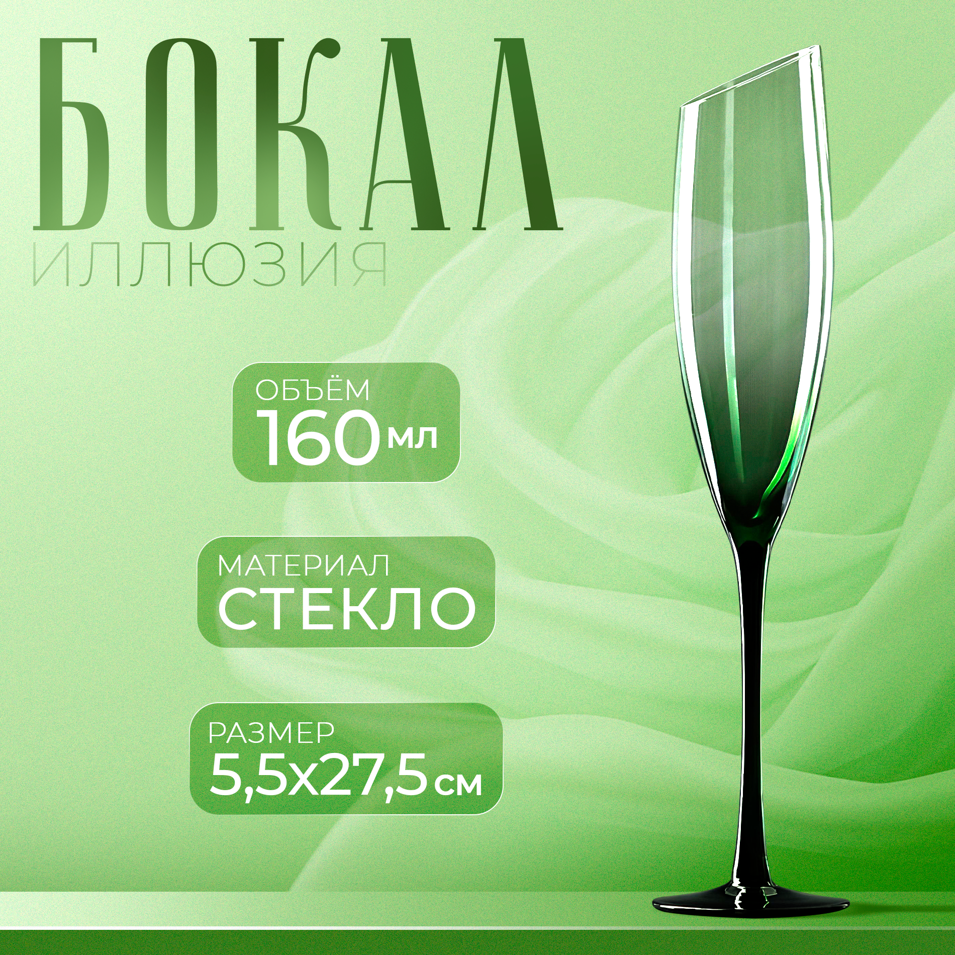Купить Бокал для шампанского стеклянный Magistro Иллюзия, 160 мл, 5,5?27,5 см, на зелёной ножке Magistro .