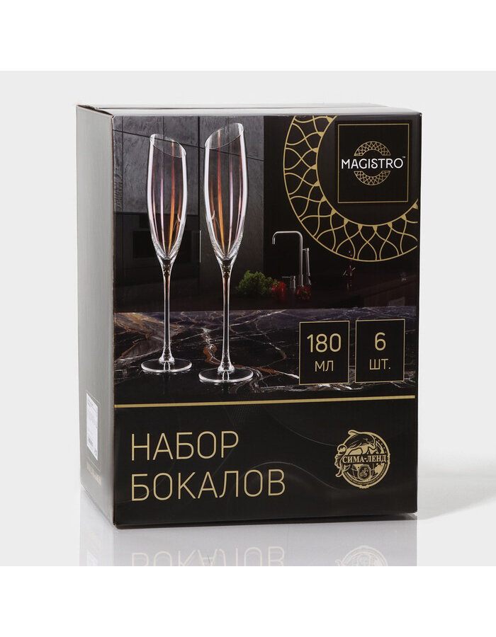 Набор бокалов для шампанского Иллюзия, 180 мл, 5,5?27,5 см, 6 шт Magistro 6073459 .
