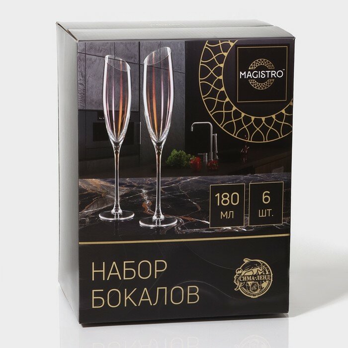 Купить Набор бокалов стеклянных для шампанского Magistro «Иллюзия», 180 мл, 5,5×27,5 см, 6 шт, цвет перламутровый