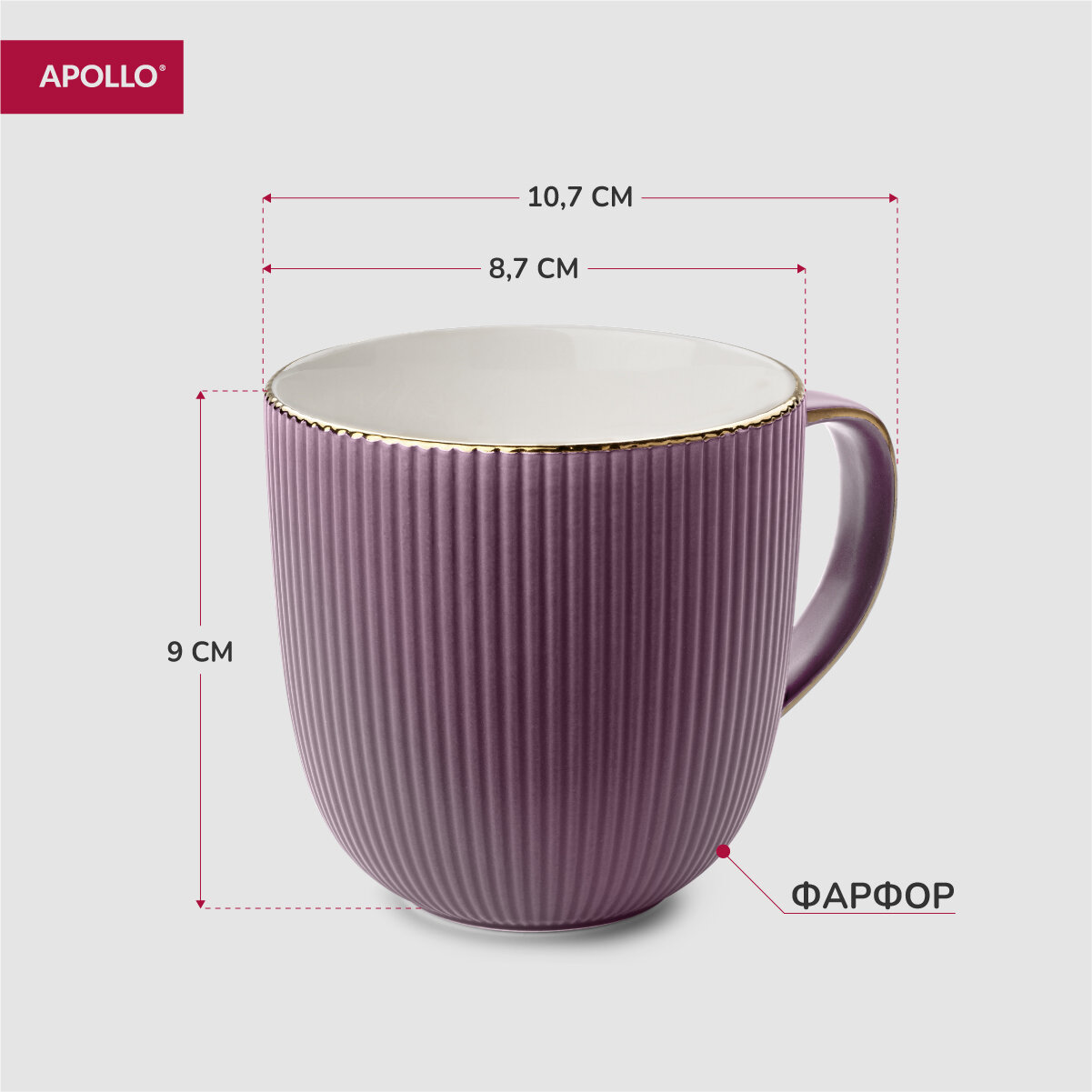 Кружка, чашка фарфоровая APOLLO "Ribb" 370 мл фиолетовая