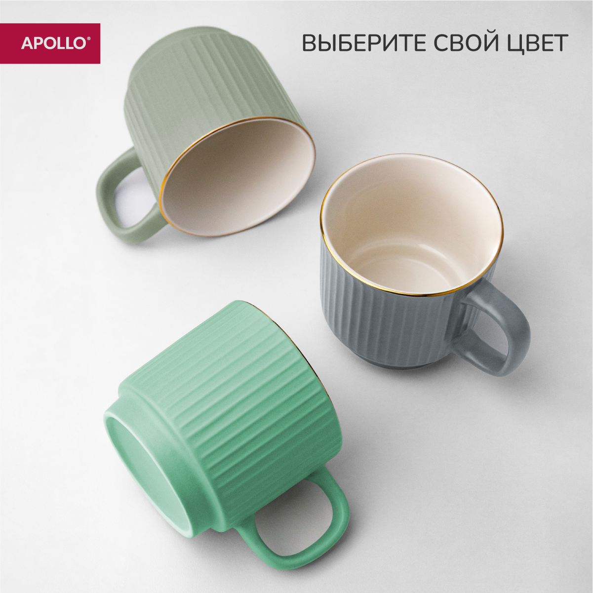 Кружка для чая и кофе, чашка фарфоровая APOLLO "Matt", 400 мл, серая с золотой окантовкой интересное: