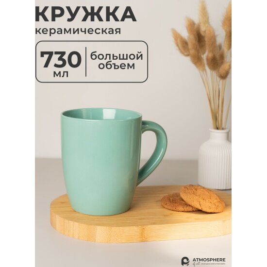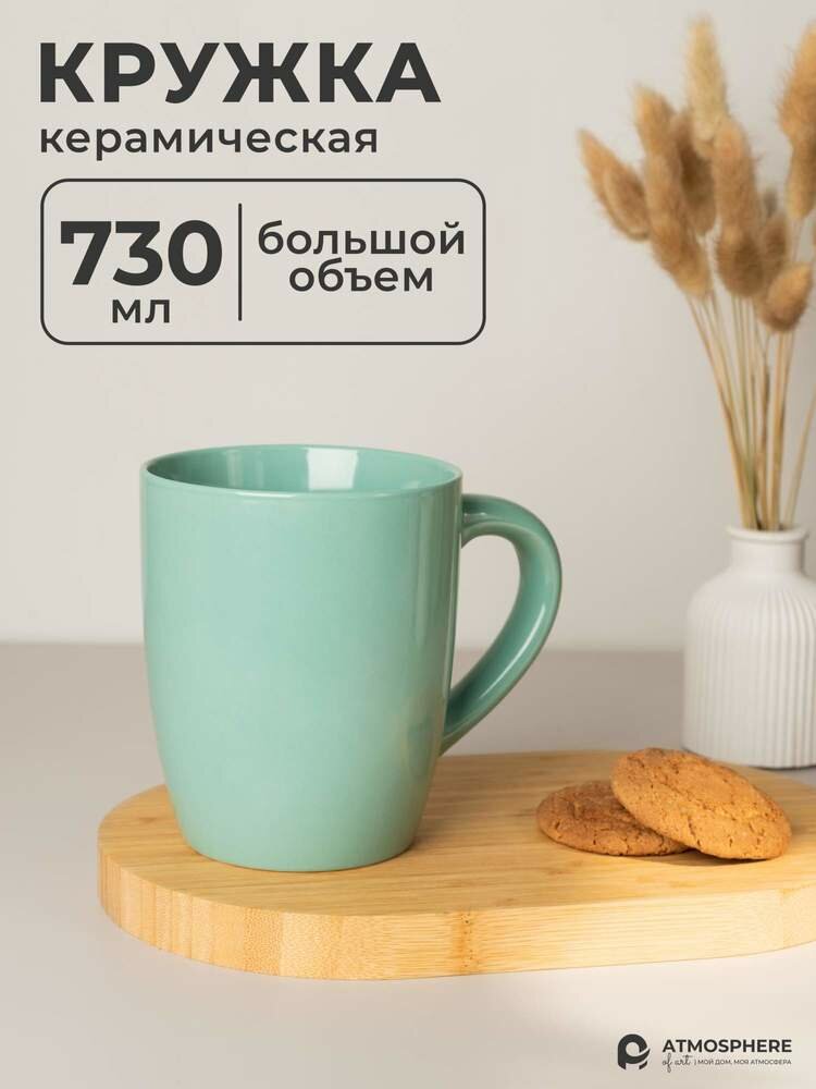 Кружка керамическая King Size, 730 мл, бирюзовый, Atmosphere of art .
